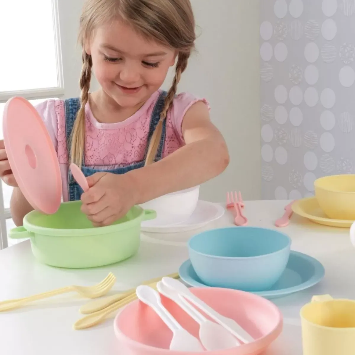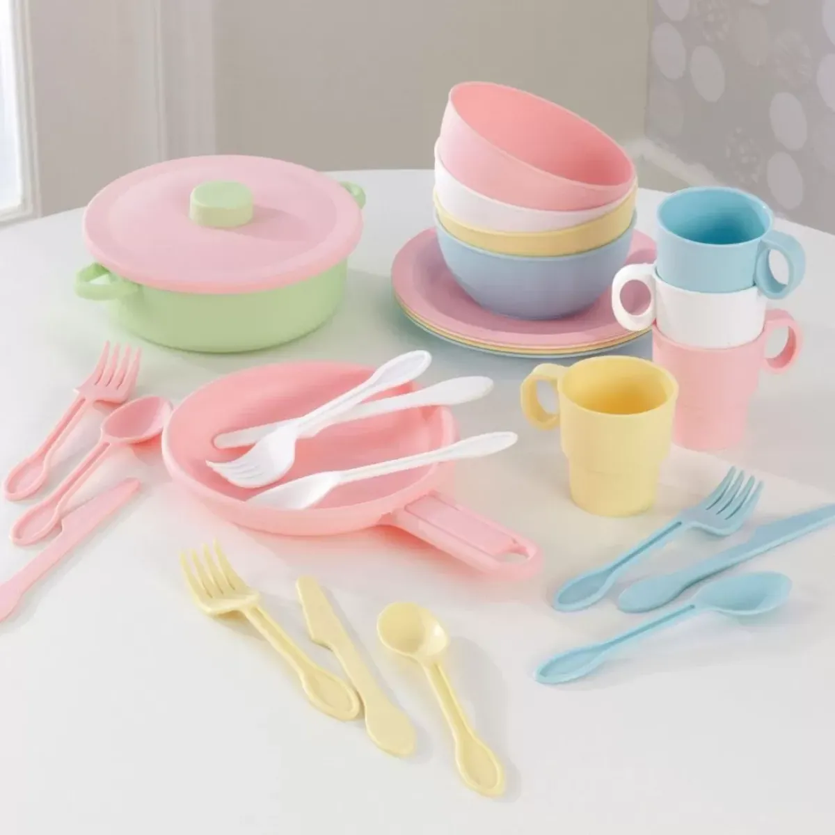 This Complete Kidkraft 27-Piece Cookware Set Has Everything Little Cooks Need To Serve Their Friends, Family Or Stuffed Animals. With A Lidded Pot, Pan And Place Settings For Four, This Set Has Everything Kids Need To Be Perfect Hosts. Built From Sturdy, Easy-To-Clean Plastic, This Set Is Built To Last.