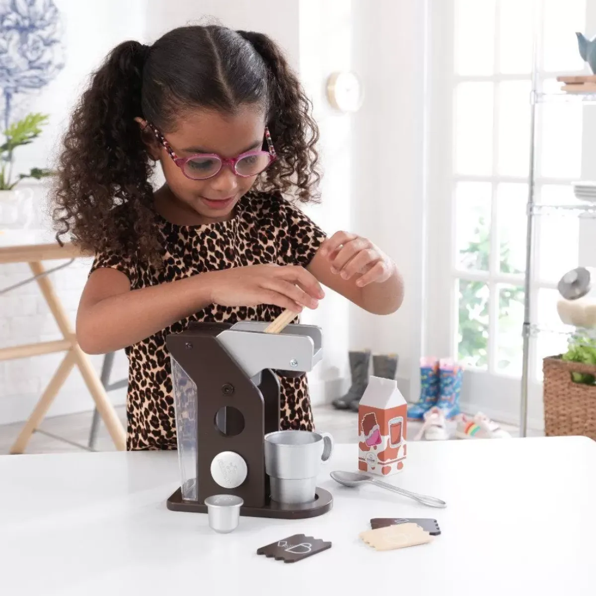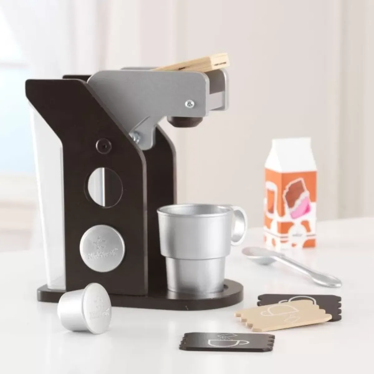 Jump Start Imaginations With The Modern-Looking Kidkraft Coffee Set Kitchen Toy. Complete With A Cup, Spoon, Sugar Packets, Milk And Coffee Pods, This Set For Budding Coffee Afficianados Is A Fun Way To Start The Day, Especially If You Have A Kidkraft Play Kitchen. A Refillable Water Reservoir Completes The Realistic Feel, And The Sturdy Construction Makes This A Long-Lasting Toy Kitchen Accessory For Kids.
