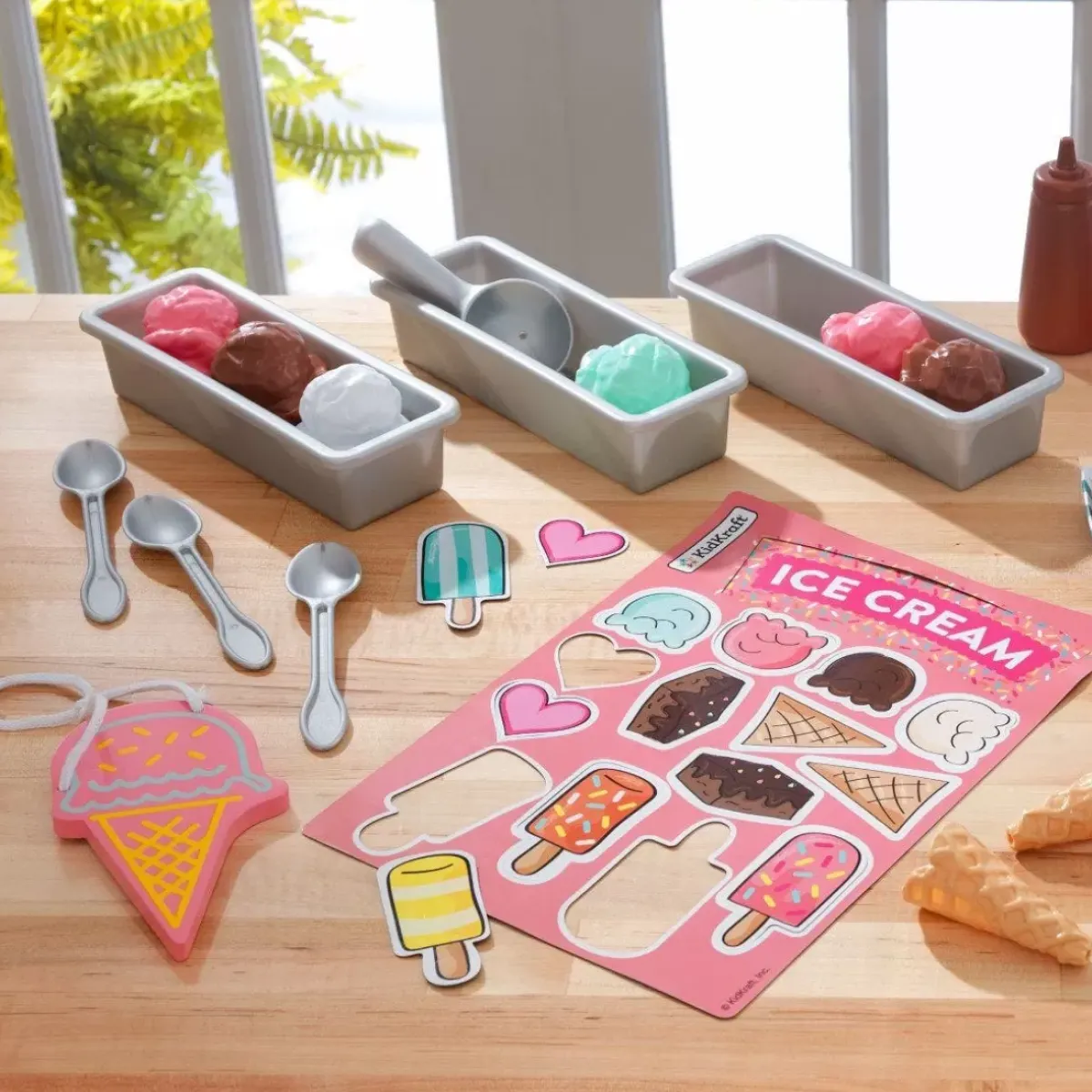 Have You Heard The Scoop? Pretend Play Just Got Sweeter With The Introduction Of Kidkraft’s Ice Cream Play Pack. This Super-Cute Play Food Set Will Give Kids A Sugar Rush Without The Stickiness. A Vibrant Selection Of Desserts Is Offered With A Full Menu Of Ice Cream, Popsicles, Brownies And Toppings. Build A Colossal Ice Cream Cone. Make A Brownie A La Mode. Display Tubs, Stands And Signs Makes This Set Ideal For Make Believe Selling Along With The Kidkraft Let’s Pretend Shopkeeper Stand (Sold Separately). Advertise The Items For Sale With The Included Magnet Sheet Of Pictures And Numbers. Serve Up Heaping Seconds (And Thirds) Of Magical Play Time With The Adorable Ice Cream Set From Kidkraft.