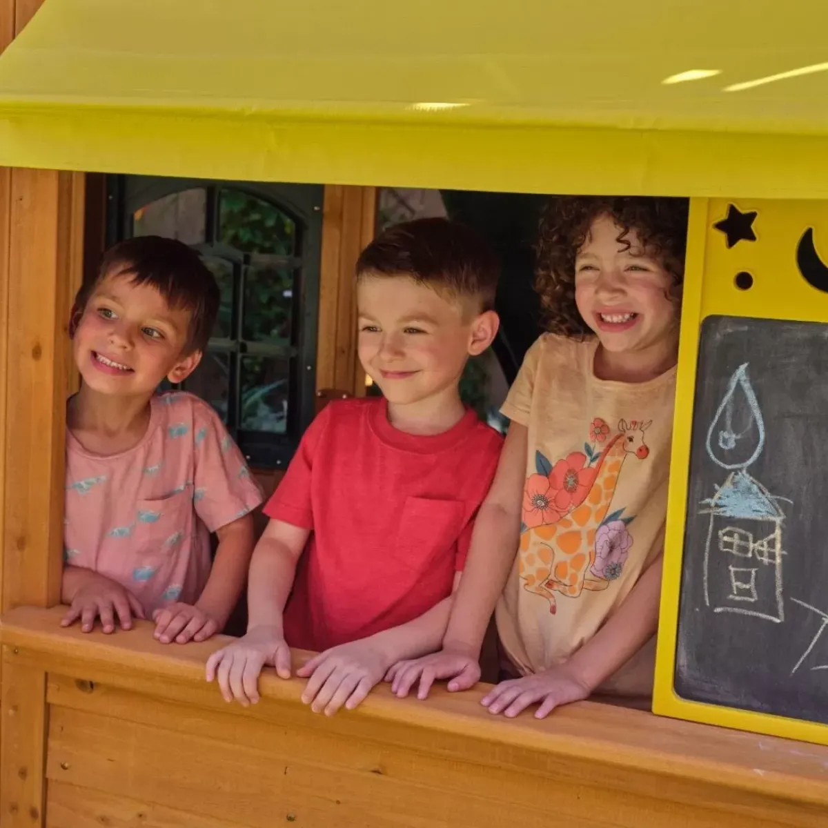- Cafe Window With Chalkboard And Moveable Bench; Inside Is A Sink, Cooktop And 3-Piece Accessory Set