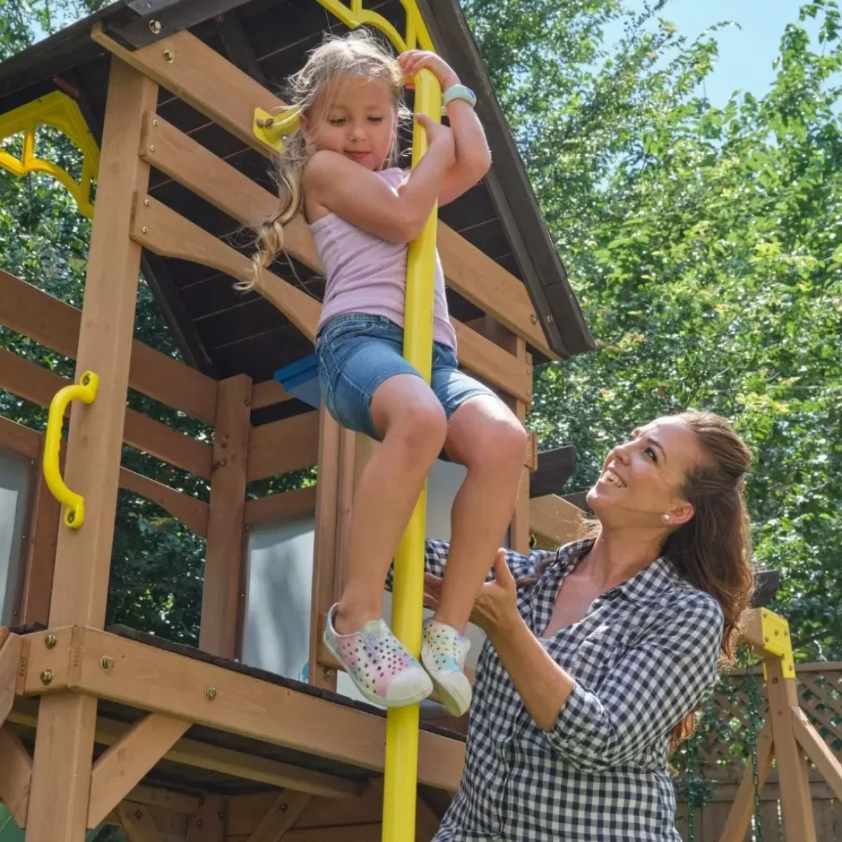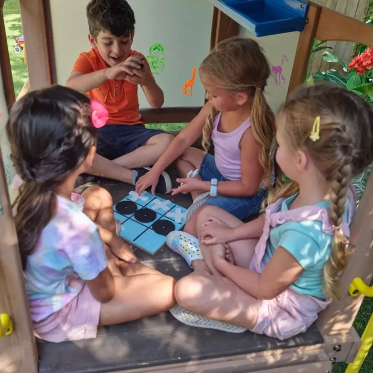 Active And Imaginative Play Converge In The Creative Cove Swing Set By Kidkraft. This Arbor-Esque Wooden Backyard Playset Brings All The Outdoor Playground Features You Expect With The Addition Of Hands-On Artistic Play As Well. Grownups Will Appreciate The Garden Details Such As The Rafters On The Top Of The Swing Beam And The Lattice Wall—A Cute Spot To Wind Ivy Or Encourage A Rose To Climb. Kids Will Focus Their Attention On The Cool Swinging Options, Wavy Slide And Rock Wall…All Tried-And-True Methods To Get Much-Needed Physical Activity In The Most Fun Ways. The Surprising Aspects Of This Set Are Ones That Will Make This Not Your Garden-Variety Backyard Playset. Three Translucent “Windows” Are Built Into The Top Of The Covered Deck. Here, Kids Can Use The Included Chalk Markers To Let Their Artistic Creativity Soar. For Guided Play, Use The Included Stencils. Or Free-Form Draw Whatever Inspires You. After The Much-Needed Brain Boost, Glide Down The Fireman’s Pole To The Bottom Level To Try Your Hand At Building Mud Pies, Sandcastles And More In The Dual Sand And Water Table. There’s Even An Open Space Underneath To Turn Into A Larger Sandbox, Ball Pit Or Quaint Picnic Area. And, Since The Structure Is Made Of Long-Lasting Wood, You Know There’Ll Be Plenty Of Days To Encourage Both Body And Brain Activity At The Same Time.