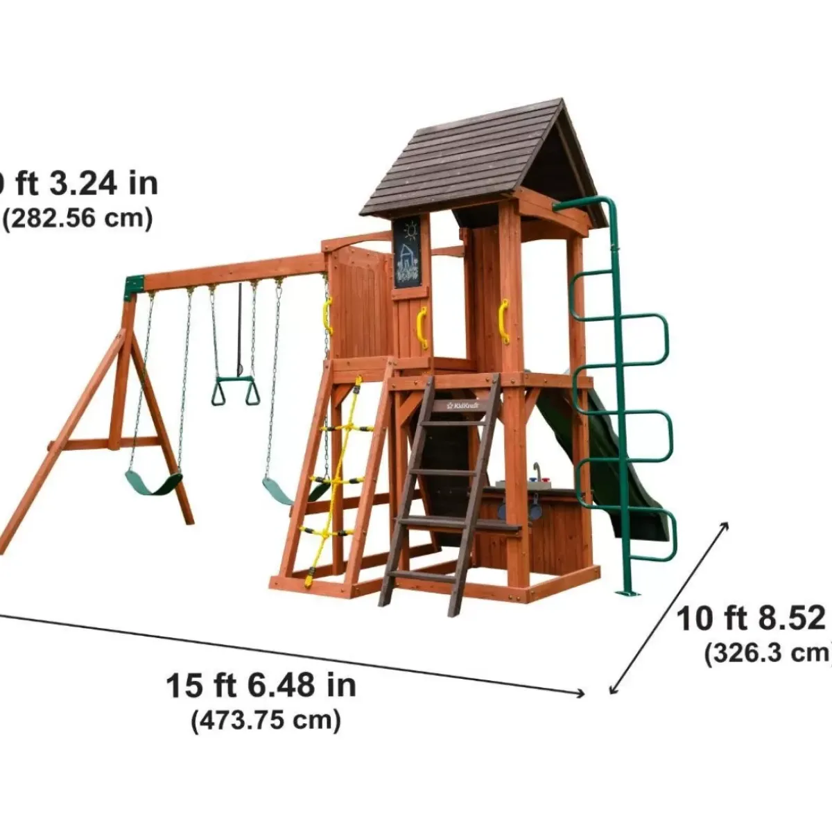 A Meandering Manner Is The Vibe Of The Kidkraft Raptor Trail Swing Set. This Wooden Swing Set Welcomes Kids To Take Their Time And Really Enjoy And Appreciate All The Active And Imaginative Play This Set Has To Offer. Each Inch Of This Playset Has An Exciting Component To Explore. Start By Flinging Into A Swing—Whether You’Re Melting Into A Blissful Belt Swing Or Flipping Over The Acrobar—It’Ll Be A Cloud-Nine Experience. Creep Into The Lower Level Of The Clubhouse And Sniff Out The Built-In Kitchen Area—Just Right For Rustling Up Nutrients During Nature. Snake Your Way Up The Zigzag Ladder And Lounge In The Upstairs Shade. Practice Telling Time On The Moveable Hands Clock Or Grab Some Chalk And Leave A Message For The Next Guests. Throw Up Your Hands And Slither Down The Slide, Then Use All Fours To Claw Your Way Back Up To The Top—Via The Rock Wall, Rope Ladder Or Slat Steps. Then, It’s Time To Try It All Again, Mixing In Stops Here, There And Everywhere, Until The Day Is Done. With Long-Lasting Wood And Heavy-Duty Materials, There’Ll Be Plenty More Time To Find Adventures.