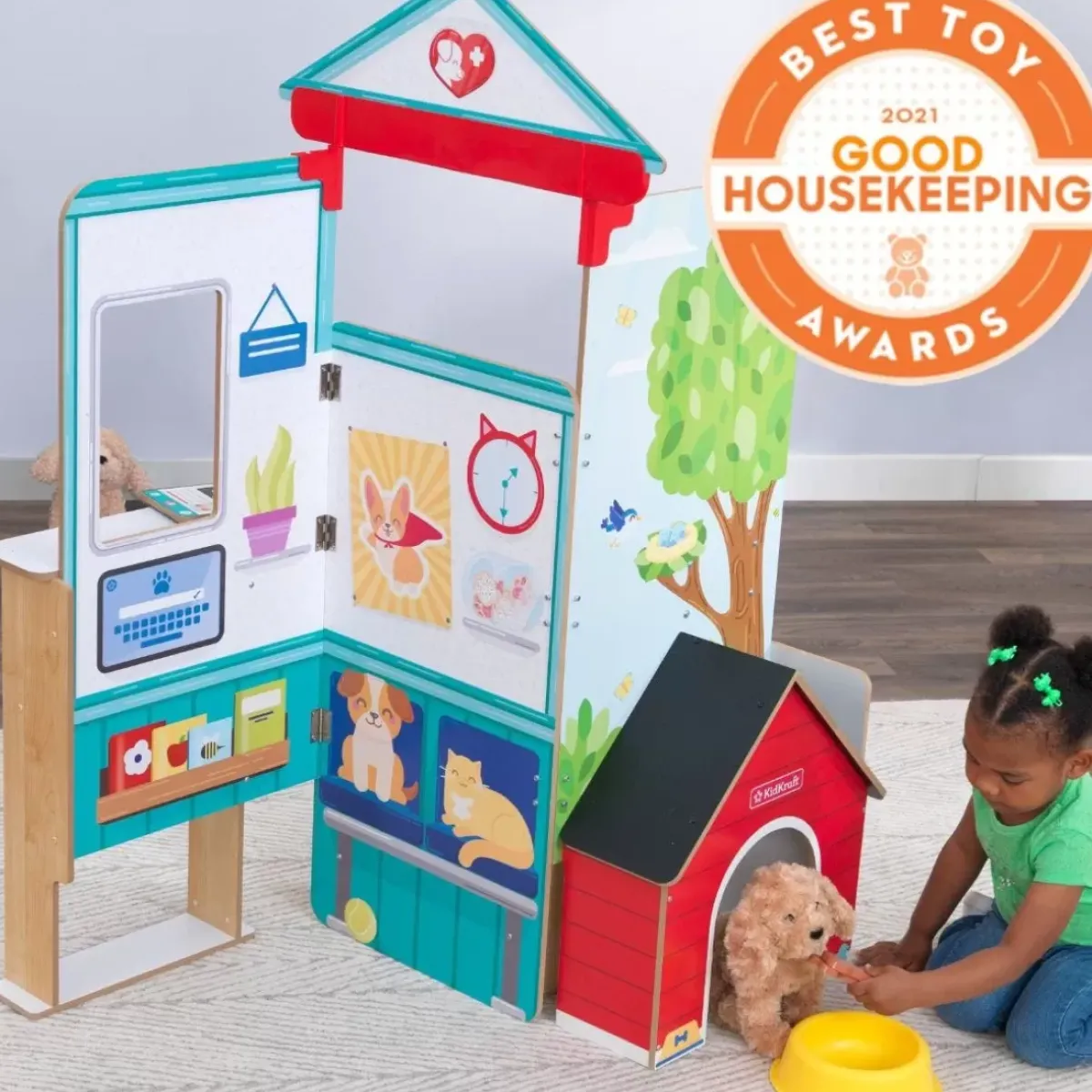 Time For A Vet Checkup At The Kidkraft Let’s Pretend™ Pet Doctor Pop-Up. Pets And Owners Alike Will Give This Easy-To-Set-Up Role-Playing Destination Two Paws Up. From Receptionist To Doctor And Even Groomer, Every Aspect Of The Veterinarian Office Experience Is Covered. There Are So Many Opportunities For Role Playing And Creating Imaginative Stories By Themselves Or With Family And Friends. With Built-In Storage Compartments And Shelves, Play Is Contained And When Playtime Is Over, Simply Fold The Sides In Toward The Middle For A Flattened Design That Stows Out Of The Way.